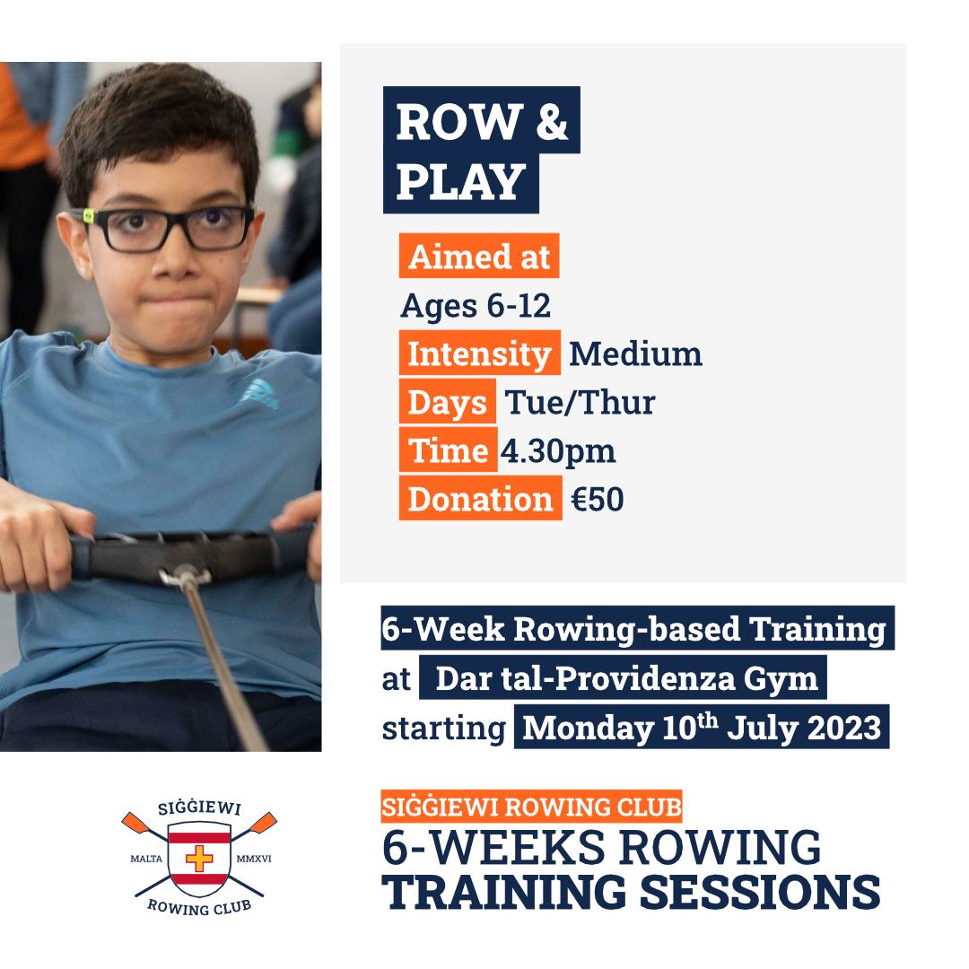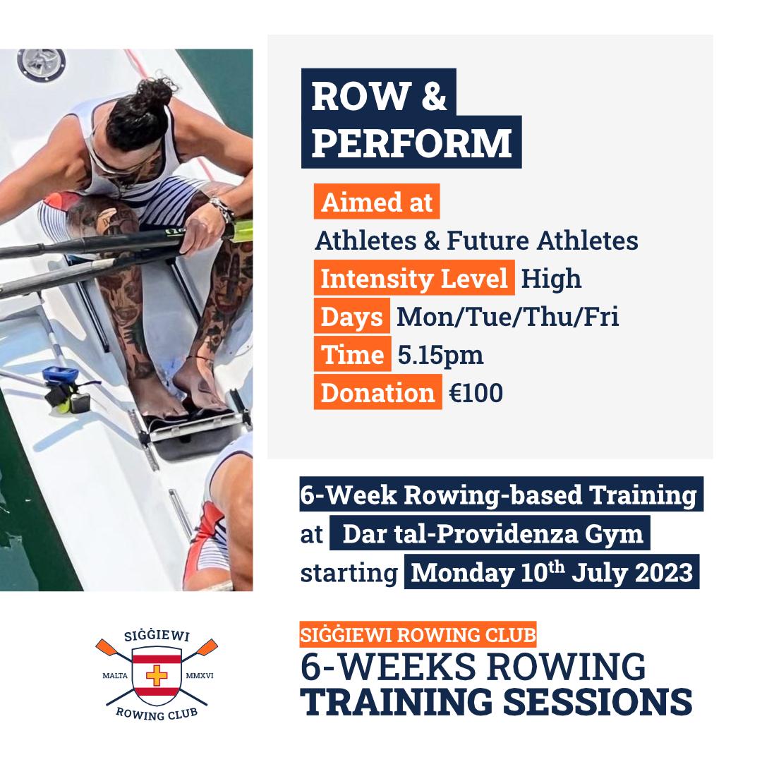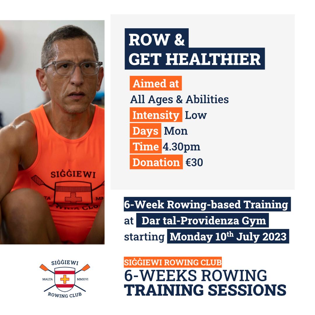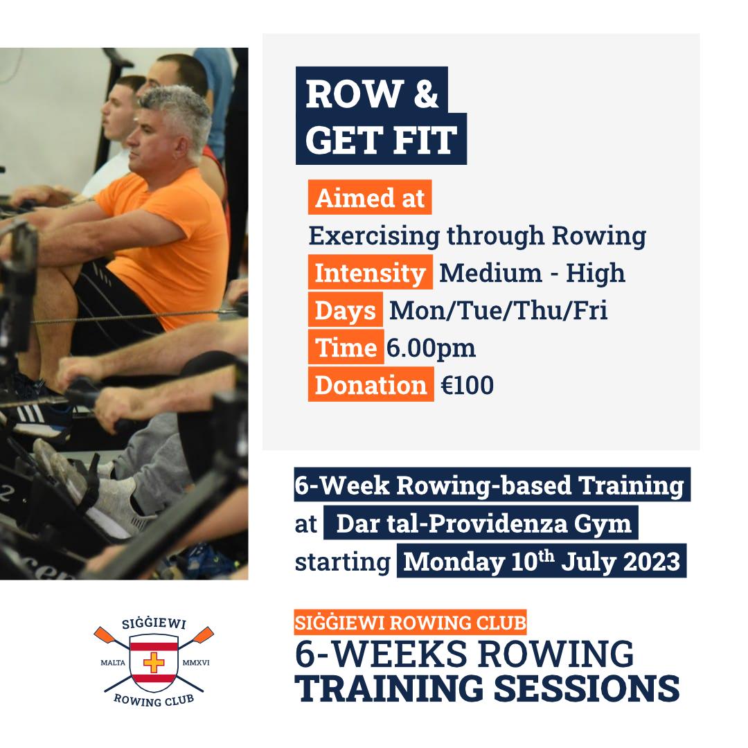 Register with Siġġiewi Rowing Club and benefit from our FOUR six-week indoor rowing based training programs tailored to your needs. Location: Siġġiewi Rowing Club Land Training Facility @ Dar tal-Providenza Gym, Siġġiewi. Start date: Week starting 10 July 2023